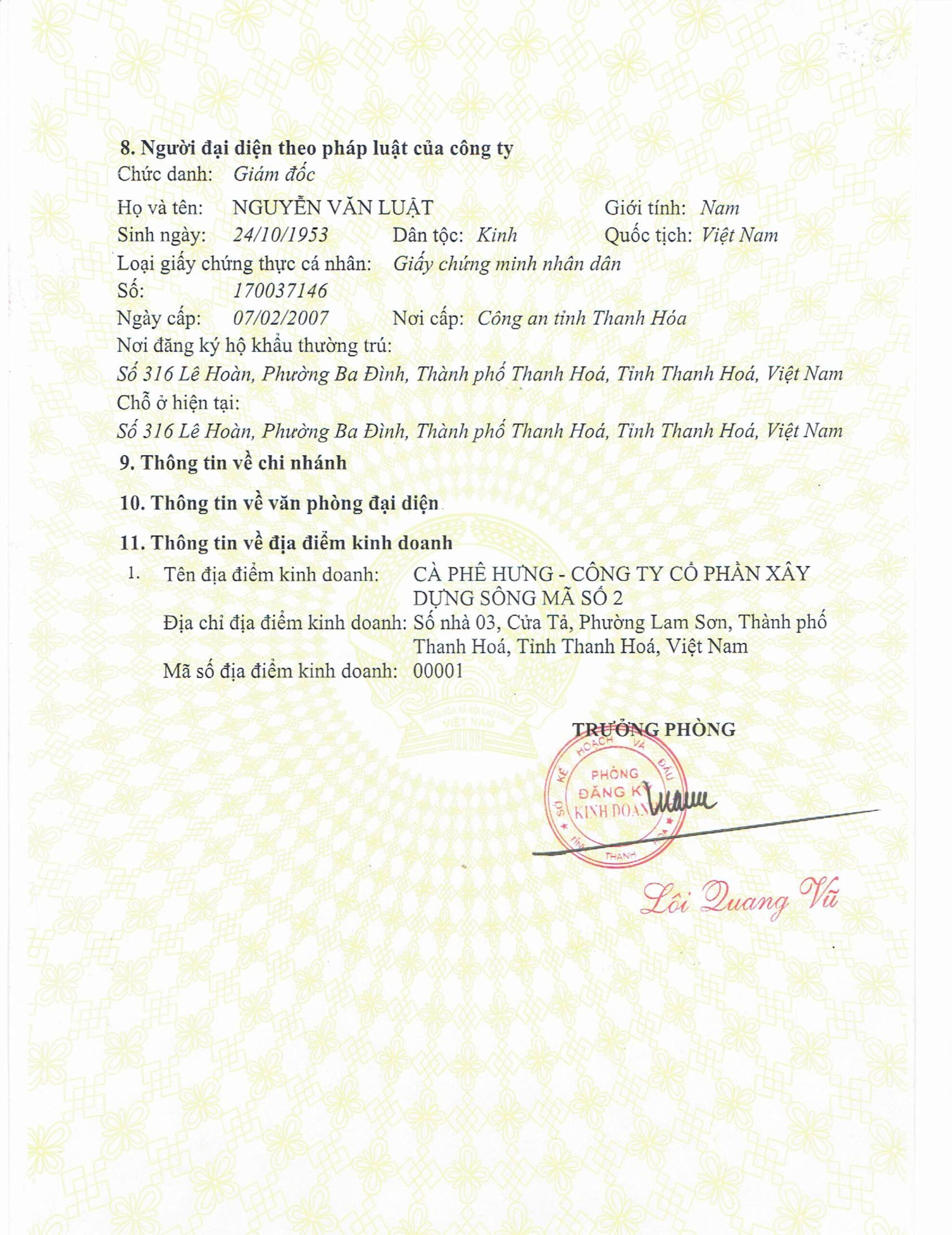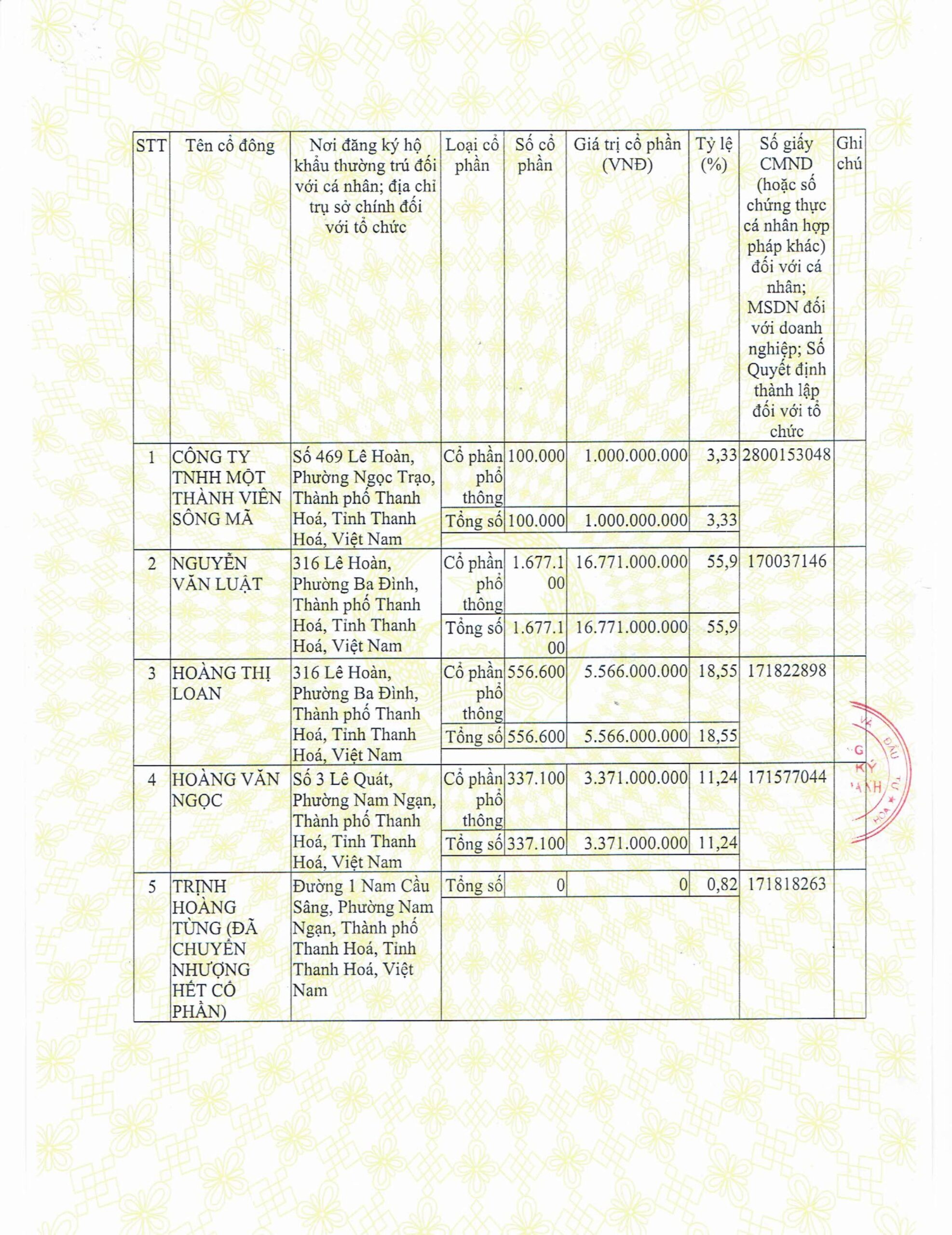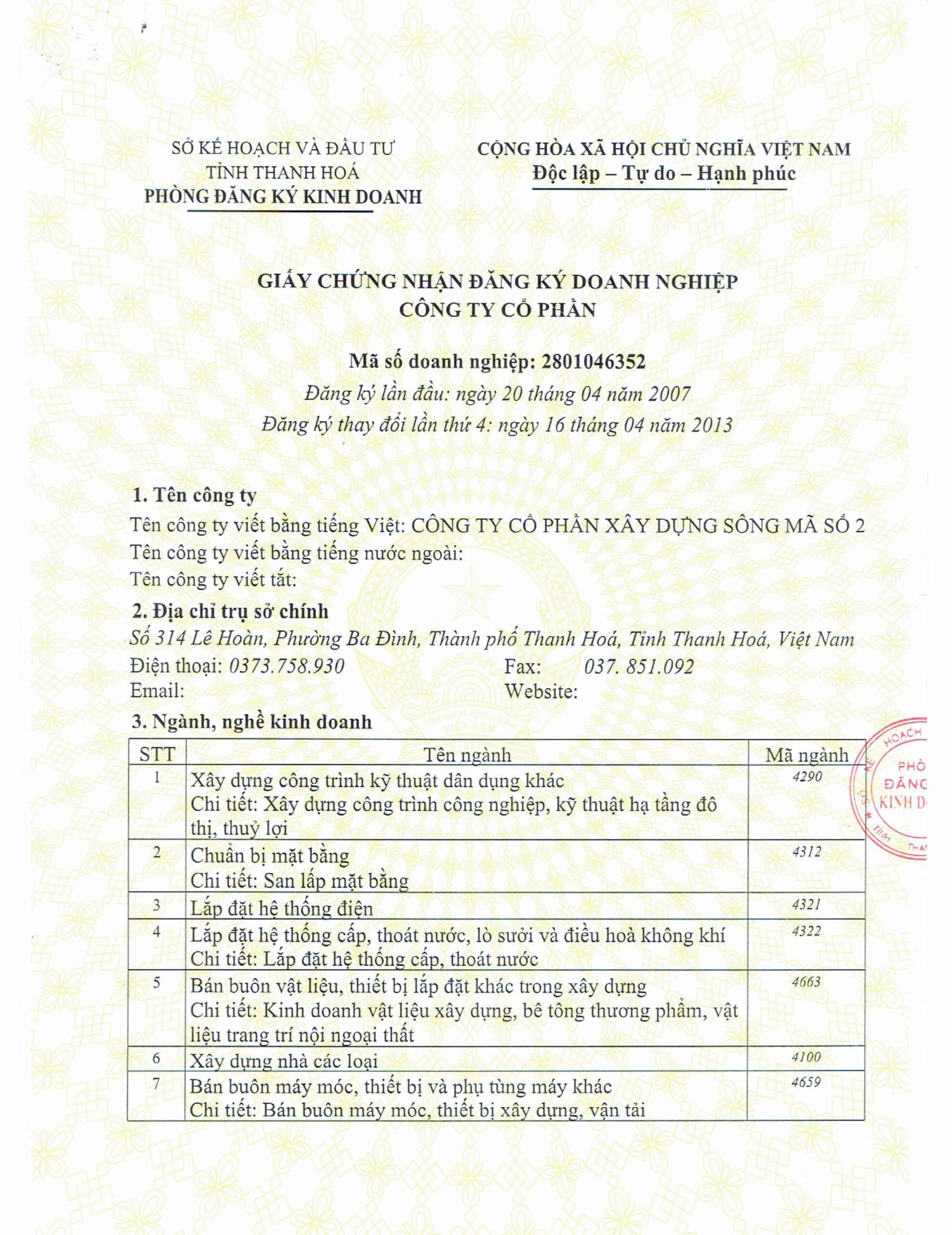 CÔNG TY CỔ PHẦN XÂY DỰNG SÔNG MÃ 2