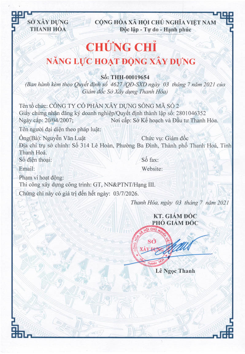 CÔNG TY CỔ PHẦN XÂY DỰNG SÔNG MÃ 2